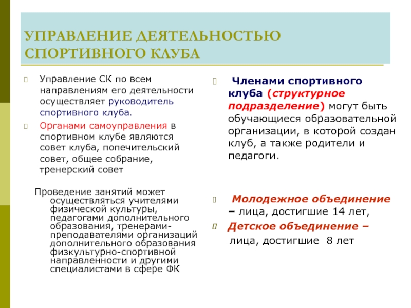 Слайд 27УПРАВЛЕНИЕ ДЕЯТЕЛЬНОСТЬЮ СПОРТИВНОГО КЛУБА