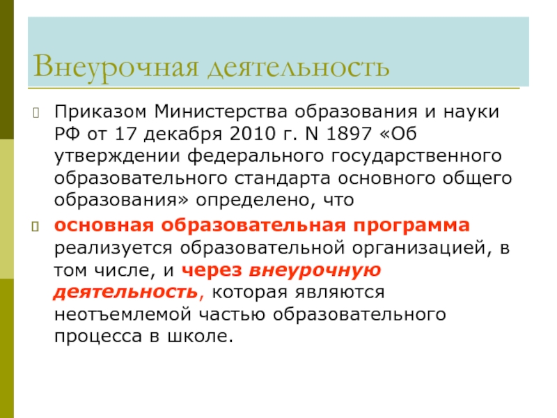 2010 г. N 1897 «Об утверждении федерального государственного образовательного стандарта основного общего образования» определено, что