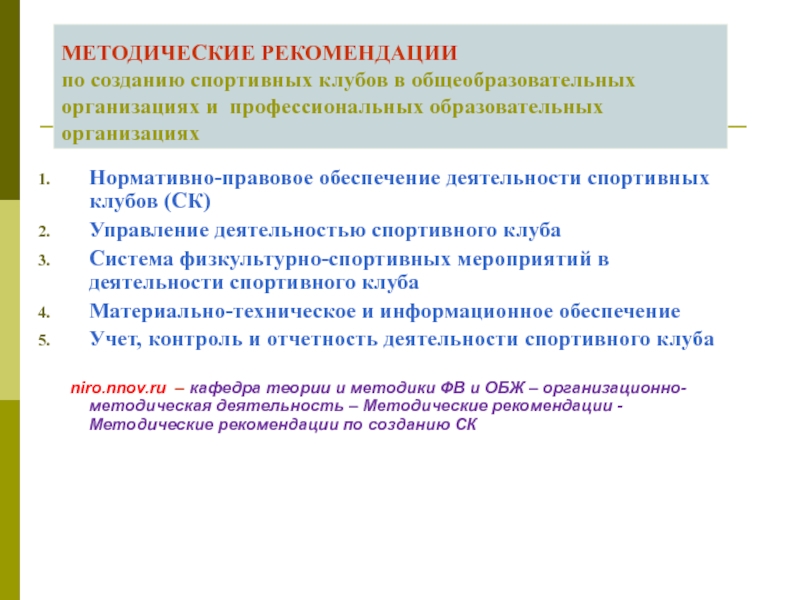 niro.nnov.ru – кафедра теории и методики ФВ и ОБЖ – организационно-методическая деятельность – Методические рекомендации - Методические рекомендации по созданию СК