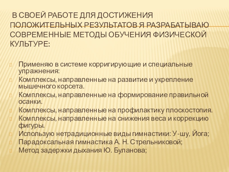 Использую нетрадиционные виды гимнастики: У-шу, Йога;