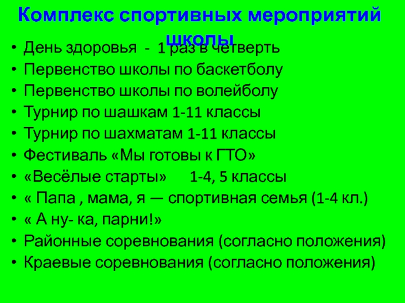 Комплекс спортивных мероприятий школы