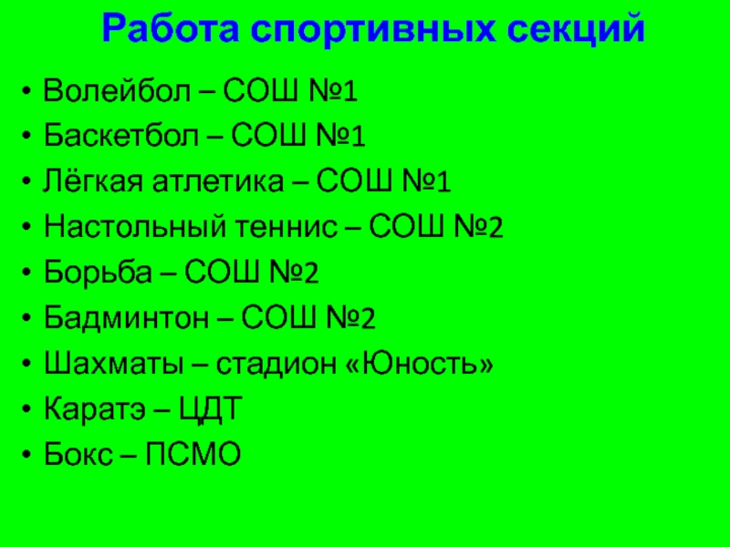 Работа спортивных секций