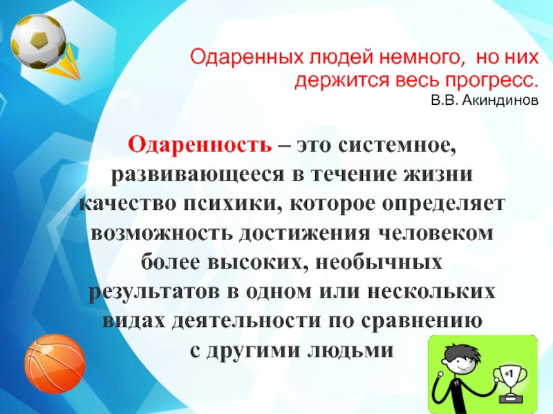 Одаренных людей немного, но них держится весь прогресс. В.В. Акиндинов