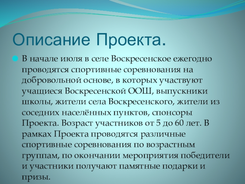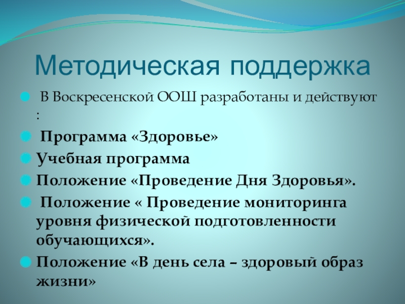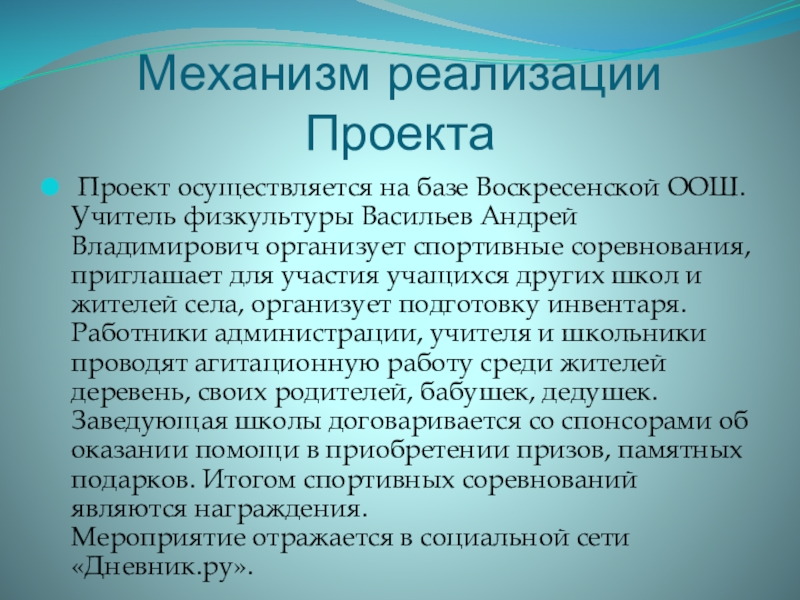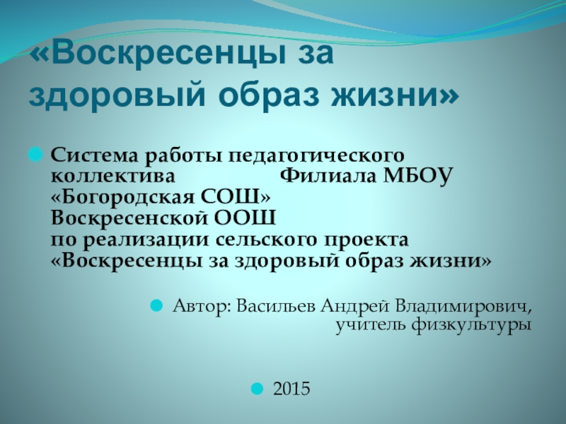 Филиала МБОУ «Богородская СОШ» Воскресенской ООШ по реализации сельского проекта «Воскресенцы за здоровый образ жизни»