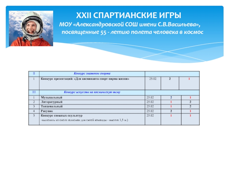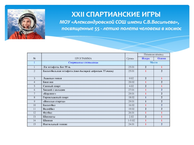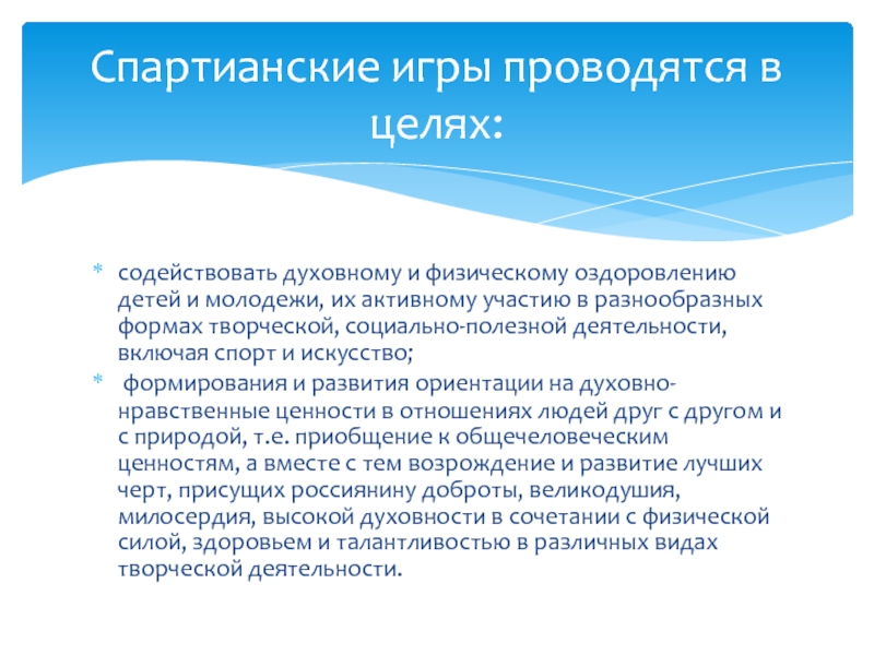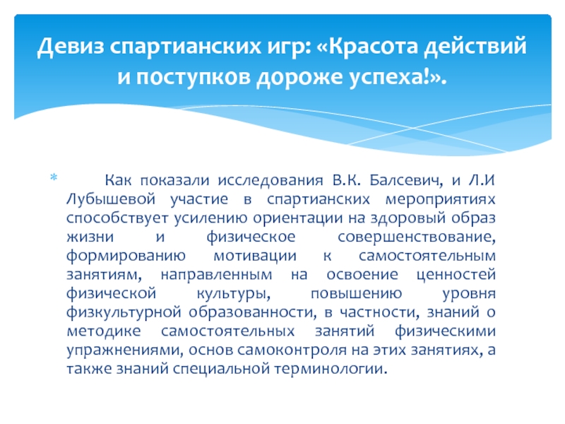 Девиз спартианских игр: «Красота действий и поступков дороже успеха!».