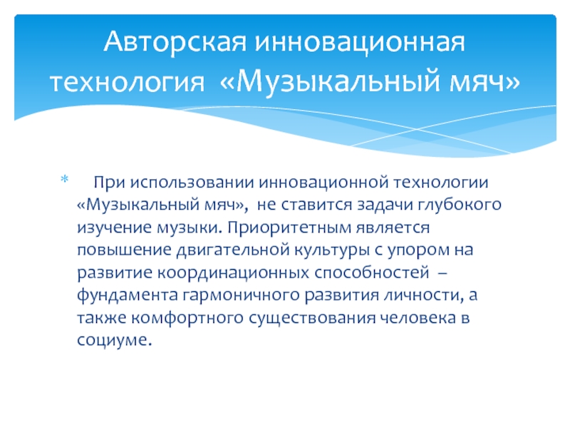 Авторская инновационная технология «Музыкальный мяч»