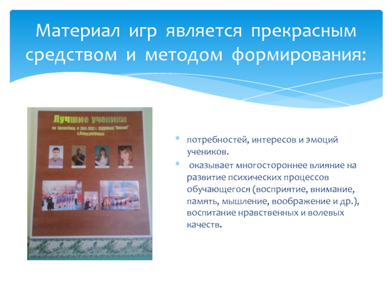 Материал игр является прекрасным средством и методом формирования:
