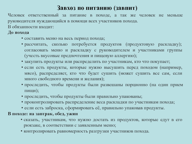 Презентация, доклад на тему РАСПРЕДЕЛЕНИЕ ОБЯЗАННОСТЕЙ В ТУРИСТИЧЕСКОЙ ГРУППЕ. В помощь руководителю похода