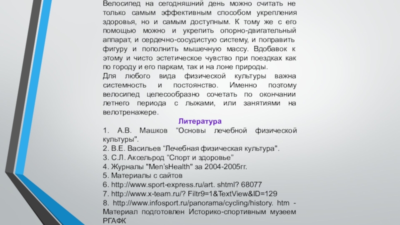8. http://www.infosport.ru/panorama/cycling/history. htm - Материал подготовлен Историко-спортивным музеем РГАФК