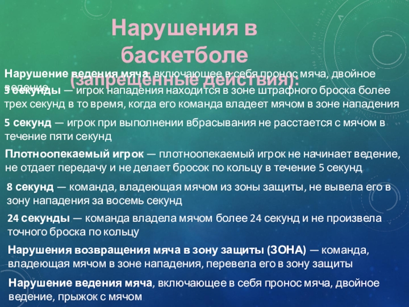 24 секунды — команда владела мячом более 24 секунд и не произвела точного броска по кольцу