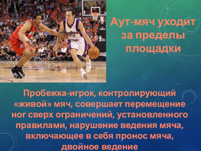 Нарушение ведения мяча, включающее в себя пронос мяча, двойное ведение, прыжок с мячом