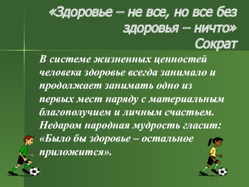 «Здоровье – не все, но все без здоровья – ничто» Сократ