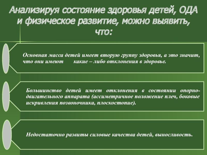 В силу организации режима школьной жизни, двигательная активность ребенка снижается в 2 раза. Традиционная организация образовательного процесса создаёт у школьников постоянные стрессовые физические и психологические перегрузки.