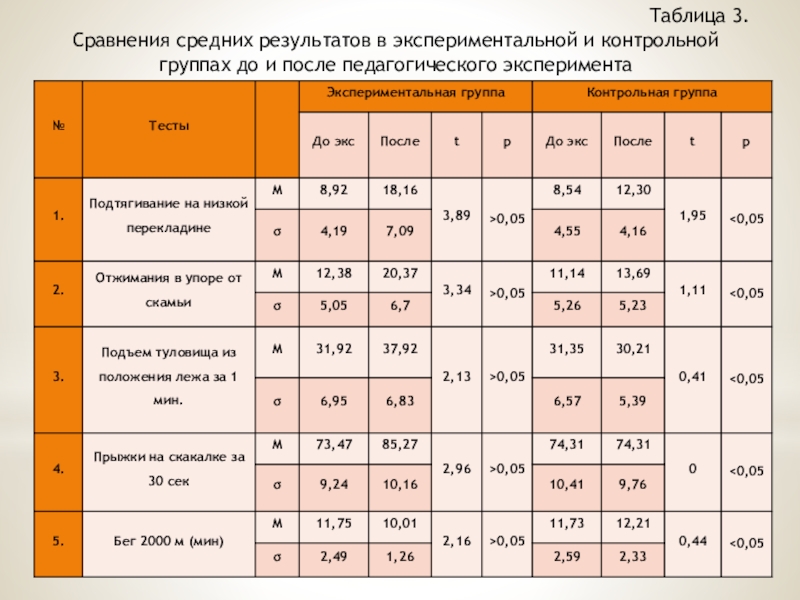 t- критерий Стьюдента (t=>2- достоверно; t<2 - не достоверно).