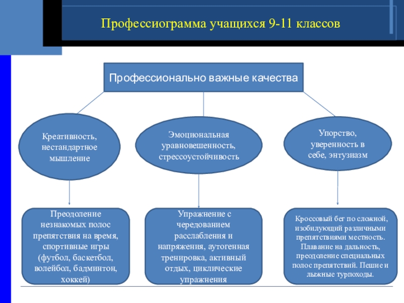 значительной общей, а в большинстве случаев специфической подготовленности. Профессиональная психофизиологическая готовность выпускников школ, базируется на высокой работоспособности, своевременной адаптации к объему и интенсивности труда и способности к полному восстановлению.