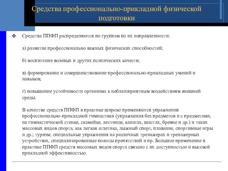 Слайд 9Средства профессионально-прикладной физической подготовки