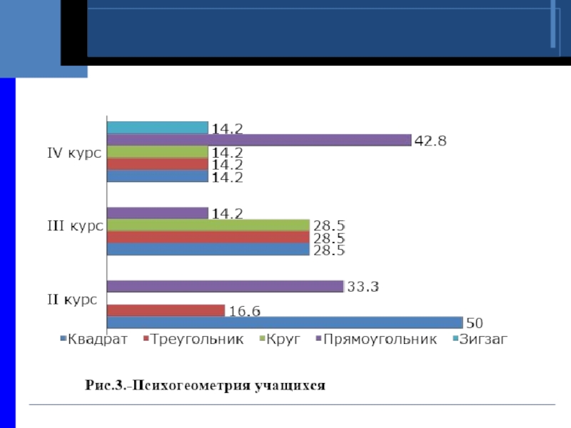 каждом классе. В 11 классе 50 % обучаемых, являются неутомимыми тружениками, старательны, рьяны, но неспособны к риску, не могут принимать решения в отсутствии достоверной информации. В 10 классе 28,5 % обучаемых, энергичны, лидеры, креативны. Целью их деятельности является – достижения определенной цели, но они не умеют признавать свои ошибки и менять свои решения. В 9 классе 42,8 % обучаемых неудовлетворенны состоянием своей жизни, всегда в поисках лучшего, постоянно создают себе проблемы.