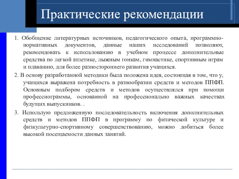 1. Обобщение литературных источников, педагогического опыта, программно-нормативных документов, данные наших