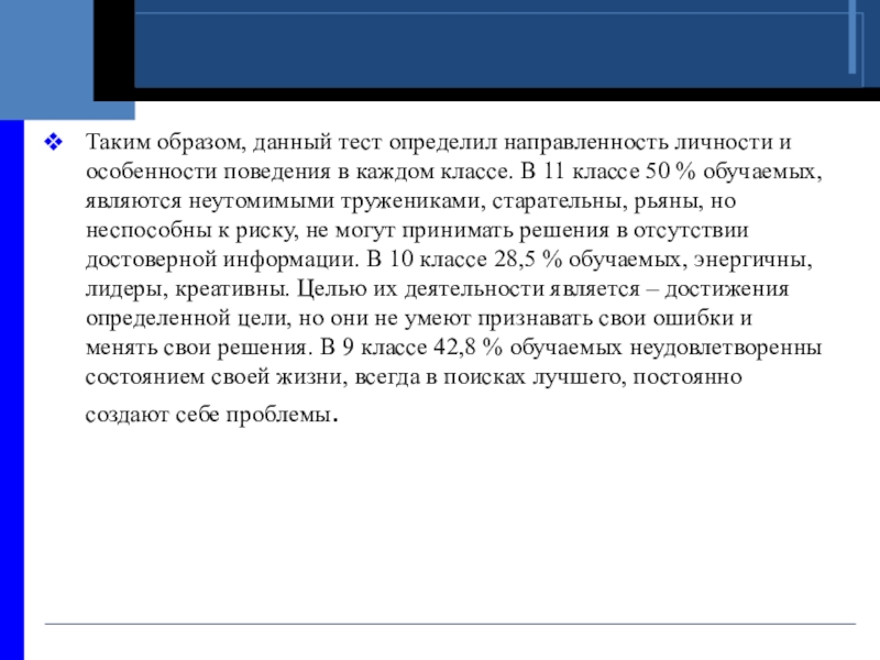 Слайд 13Таким образом, данный тест определил направленность личности и особенности поведения в