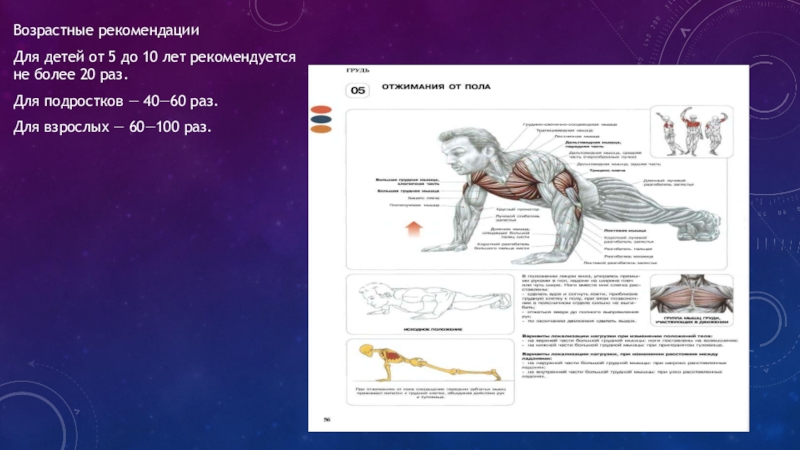Слайд 2Отжимание от пола — базовое физическое упражнение, развивающее большую грудную мышцу