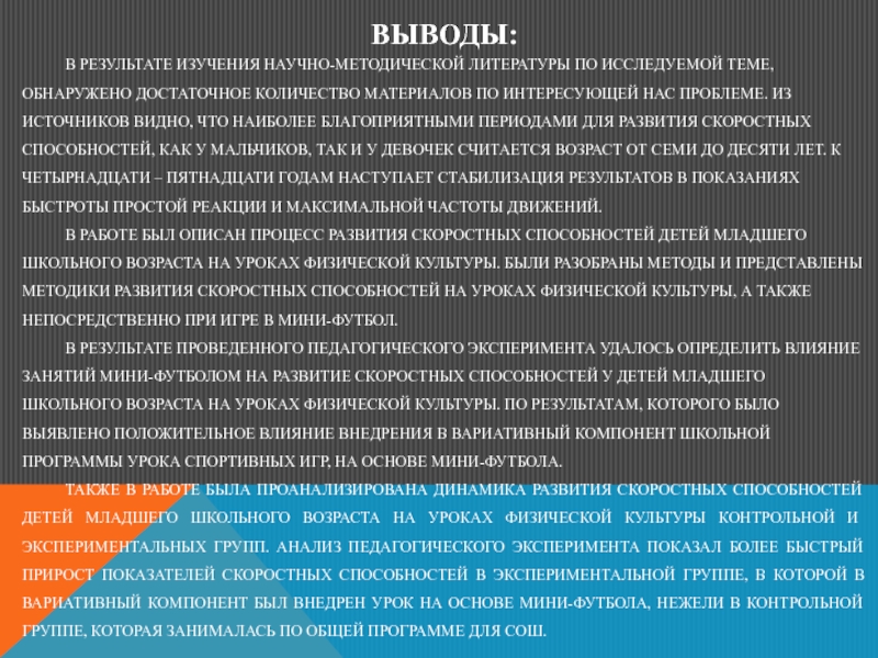 методика развития скоростных способностей детей младшего школьного возраста посредством игры в мини-футбол.