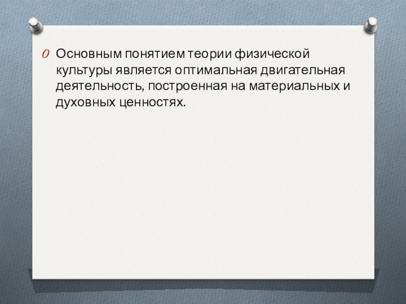 Слайд 2Основным понятием теории физической культуры является оптимальная двигательная деятельность, построенная на