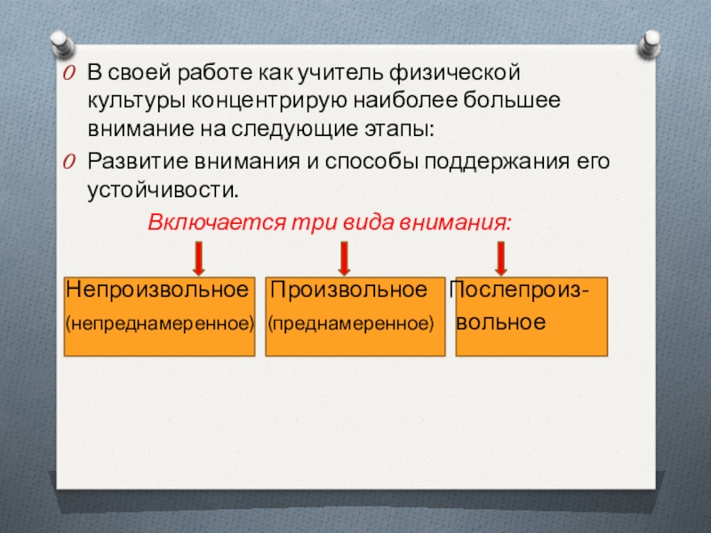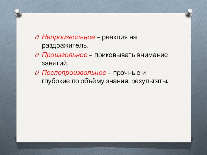Произвольное – приковывать внимание занятий.