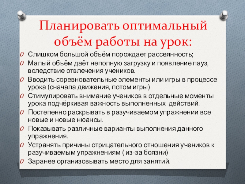 Слайд 9Планировать оптимальный объём работы на урок:
