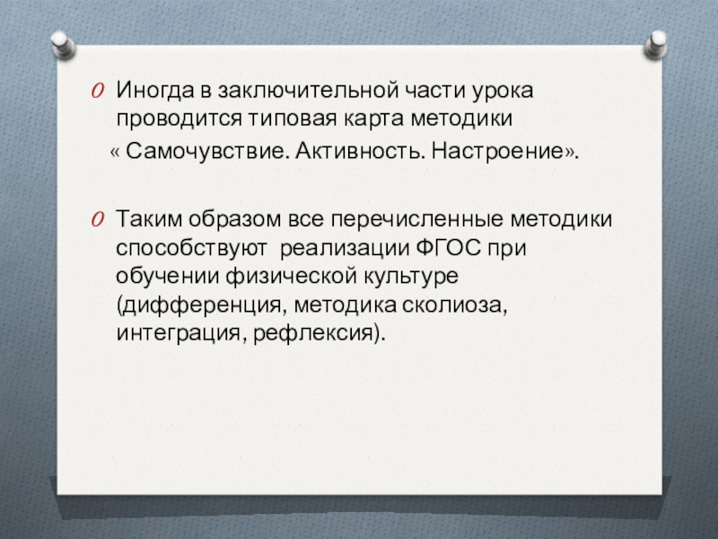 Слайд 12Иногда в заключительной части урока проводится типовая карта методики