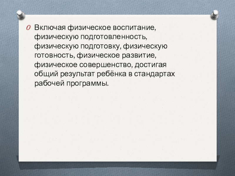 Слайд 3Включая физическое воспитание, физическую подготовленность, физическую подготовку, физическую готовность, физическое развитие,
