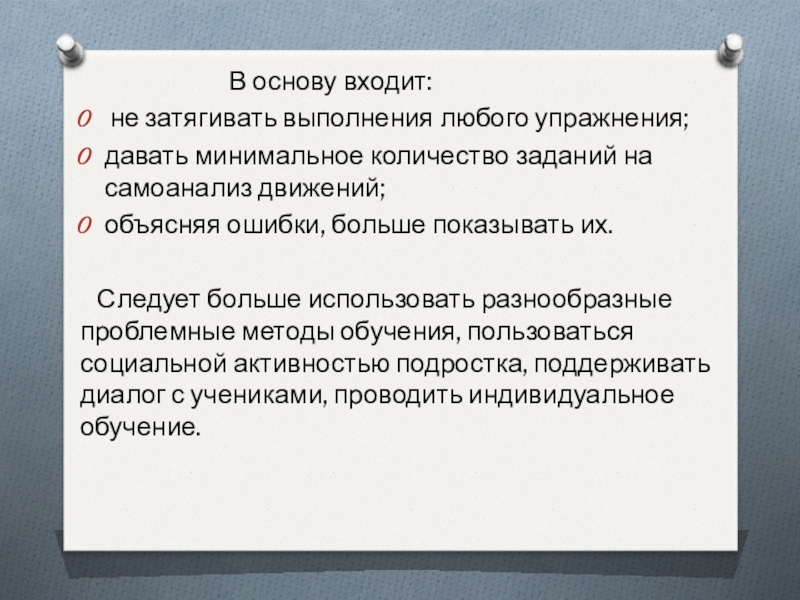 Устранять причины отрицательного отношения учеников к разучиваемым упражнениям ( из-за боязни)