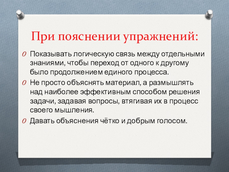 Слайд 7При пояснении упражнений:
