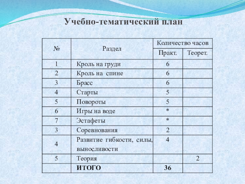 3. Обучить основам техники всех способов плавания и широкому кругу двигательных навыков.