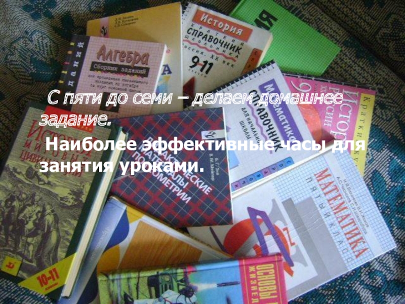 Слайд 7 С половины девятого до двух - учеба в школе.
