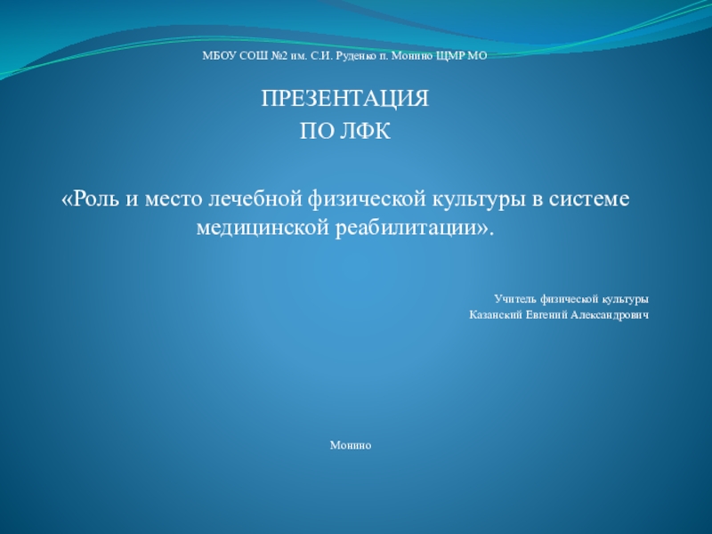 Слайд 1МБОУ СОШ №2 им. С.И. Руденко п. Монино ЩМР МО