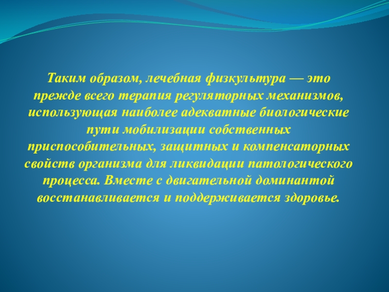 Таким образом, лечебная физкультура — это прежде всего терапия регуляторных механизмов,