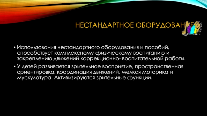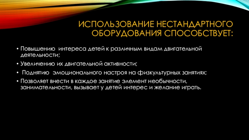 Слайд 8Использование нестандартного оборудования способствует: