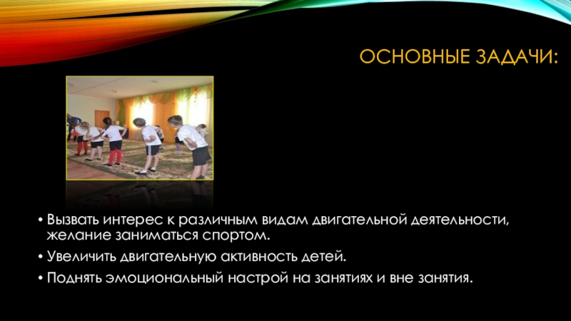 Вызвать интерес к различным видам двигательной деятельности, желание заниматься спортом.