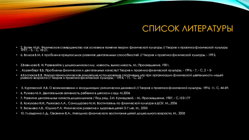 6. Волков В.М. К проблеме предпосылок развития двигательных способностей // Теория и практика физической культуры. - 1993.