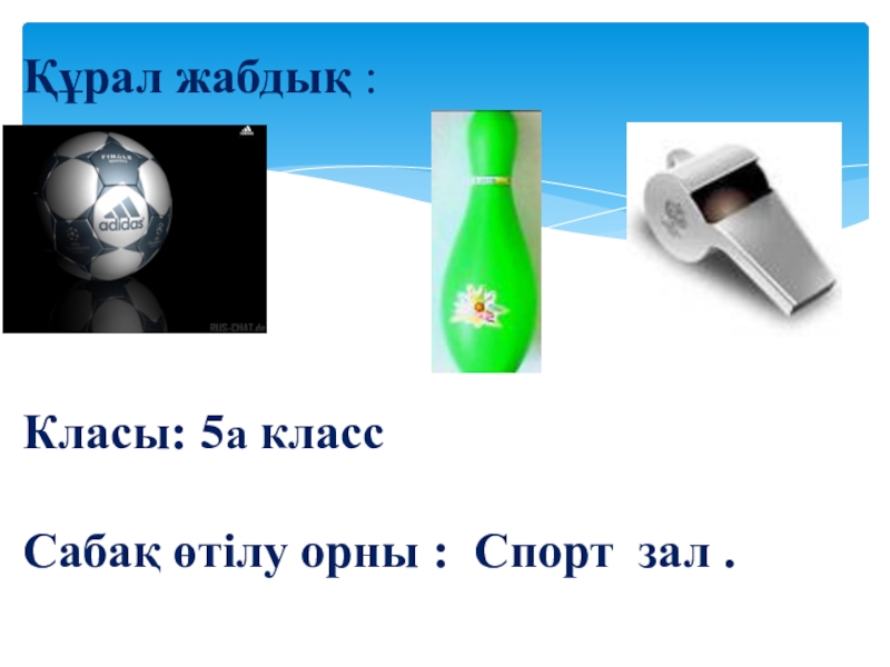Құрал жабдық :Класы: 5а классСабақ өтілу орны : Спорт зал .