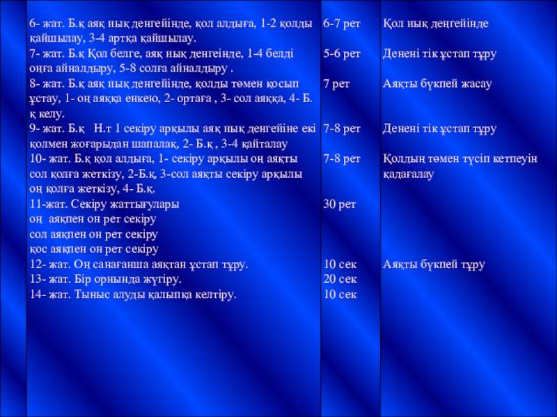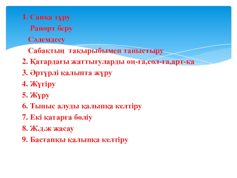 2. Қатардағы жаттығуларды оң-ға,сол-ға,арт-қа