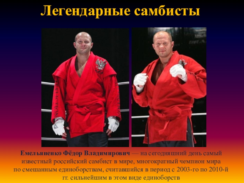 Слайд 17Емельяненко Фёдор Владимирович — на сегодняшний день самый известный российский самбист в