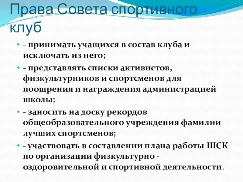Слайд 9Права Совета спортивного клуб