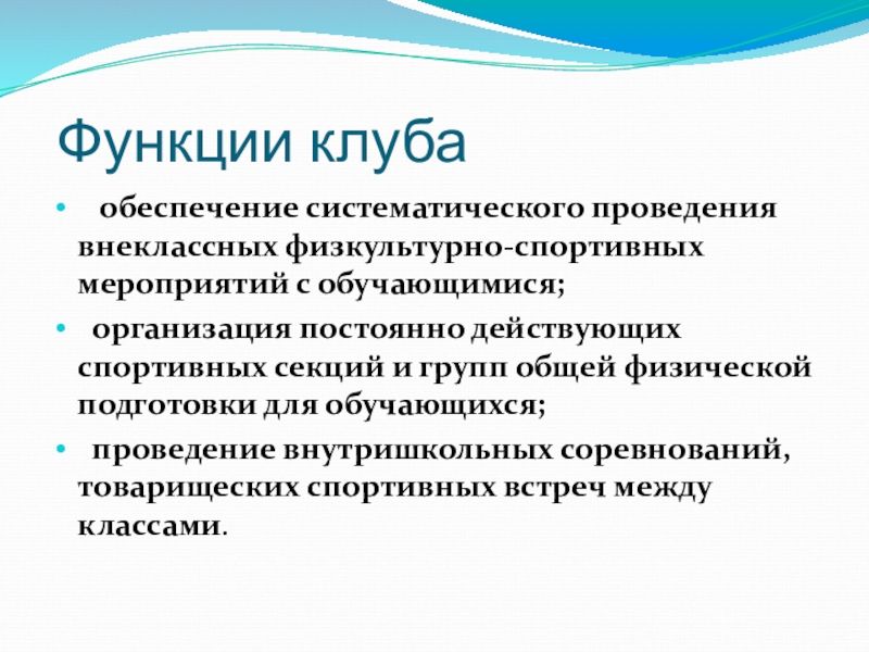 Слайд 6 Функции клуба