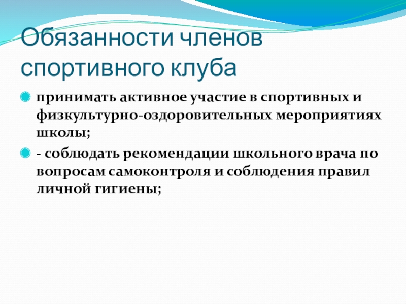 Слайд 10Обязанности членов спортивного клуба