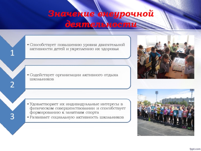 Внеурочная деятельность является составной частью учебно-воспитательного процесса и одной из форм организации свободного времени учащихся. Внеурочная деятельность понимается сегодня преимущественно как деятельность, организуемая во внеурочное время для удовлетворения потребностей учащихся в содержательном досуге, их участии в самоуправлении и общественно полезной деятельности.
