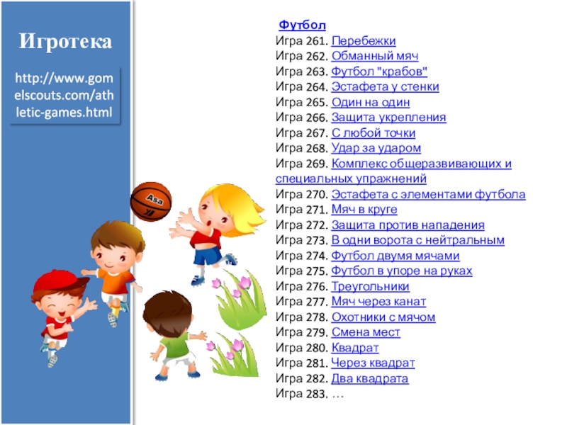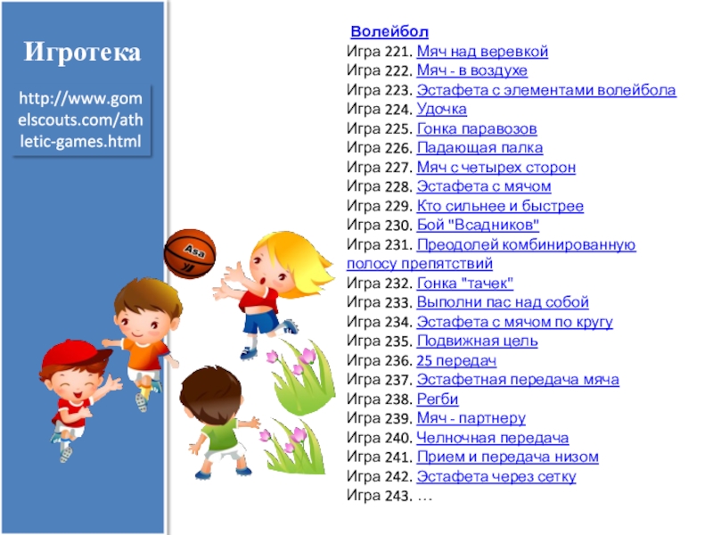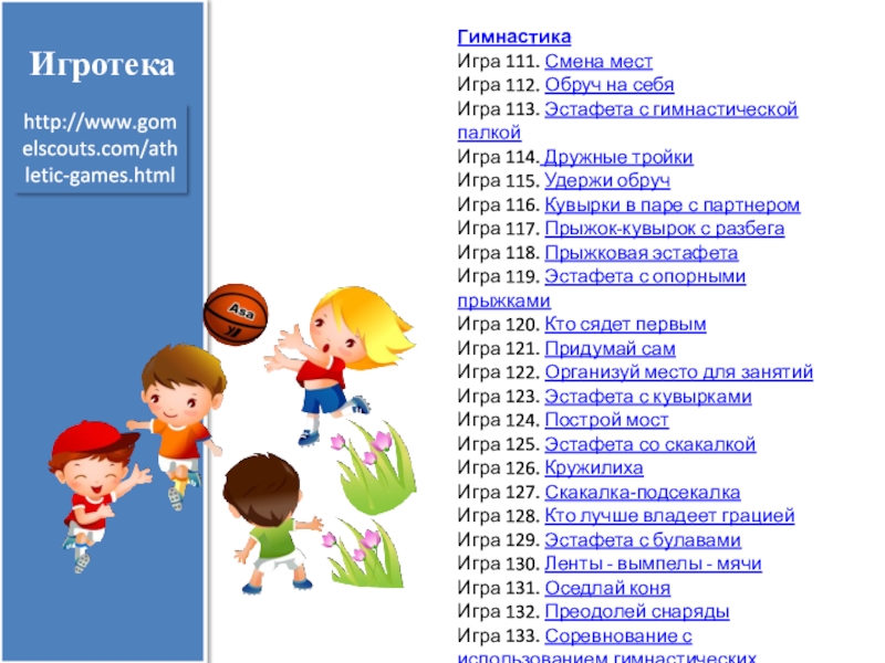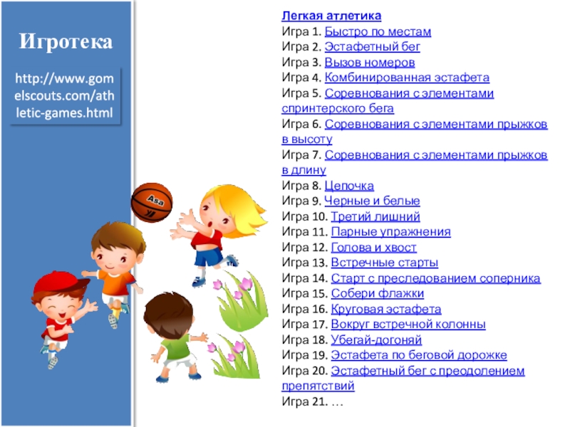 Инвентарь: флажки, набивные мячи или другие предметы.