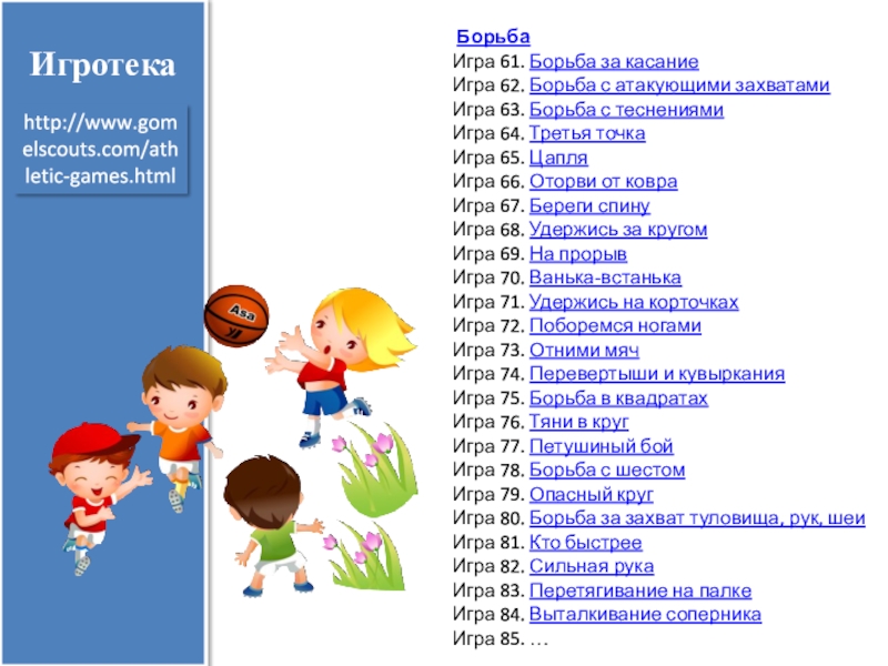 Задачи: развитие согласованности движений отдельных частей тела; воспитание ловкости, быстроты в игровых условиях.