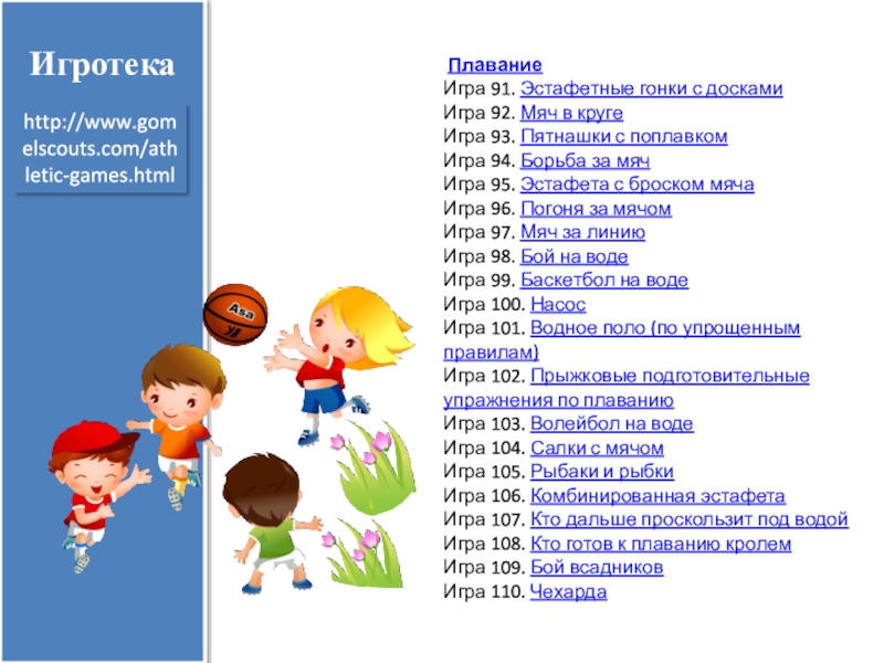 Задачи: закрепление навыка передачи мяча в воде; совершенствование ловкости, точности движений, быстроты реакции; воспитание чувства коллективизма в соревновательных условиях.
