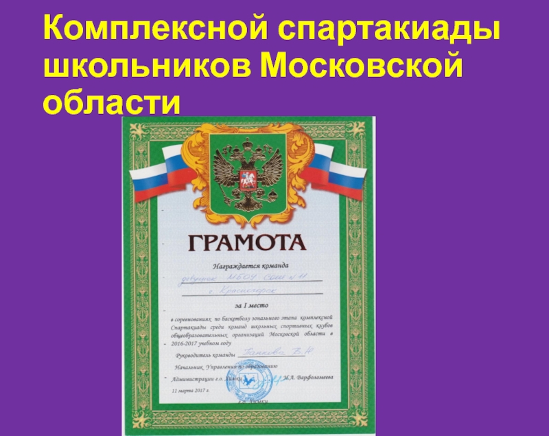 Слайд 13Комплексной спартакиады школьников Московской области по баскетболу;
